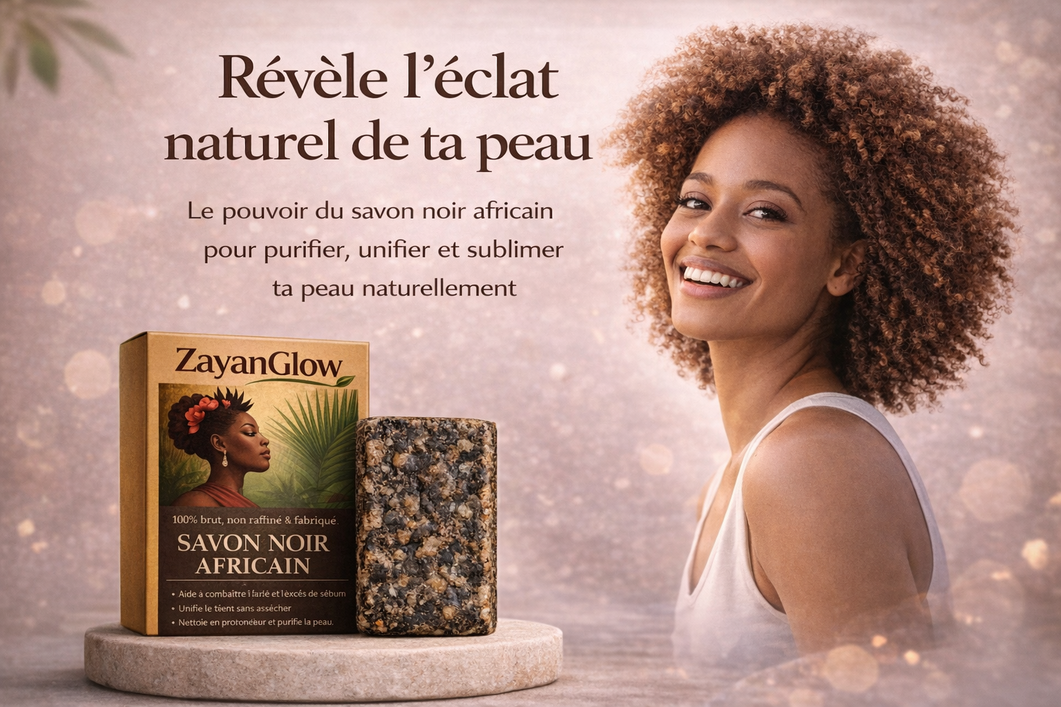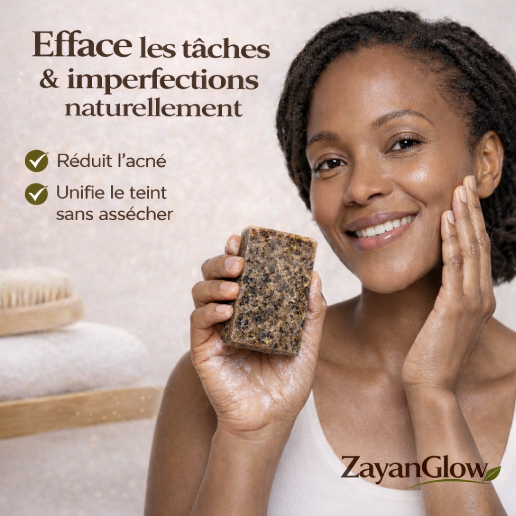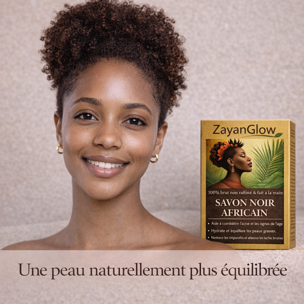 Le savon noir africain ZayanGlow, inspiré des traditions d’Afrique de l’Ouest, nettoie la peau en profondeur tout en respectant son équilibre naturel.